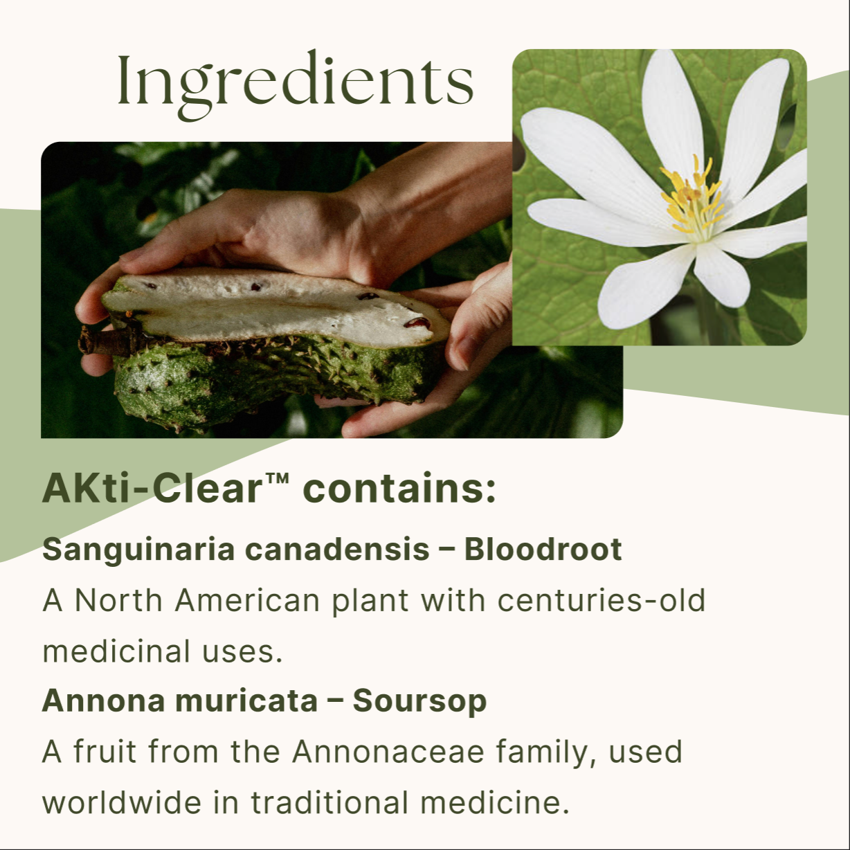 AKti-Clear™ contains: Sanguinaria canadensis (Bloodroot) is a plant native to North America. It has been around for centuries and is known for its medicinal properties.